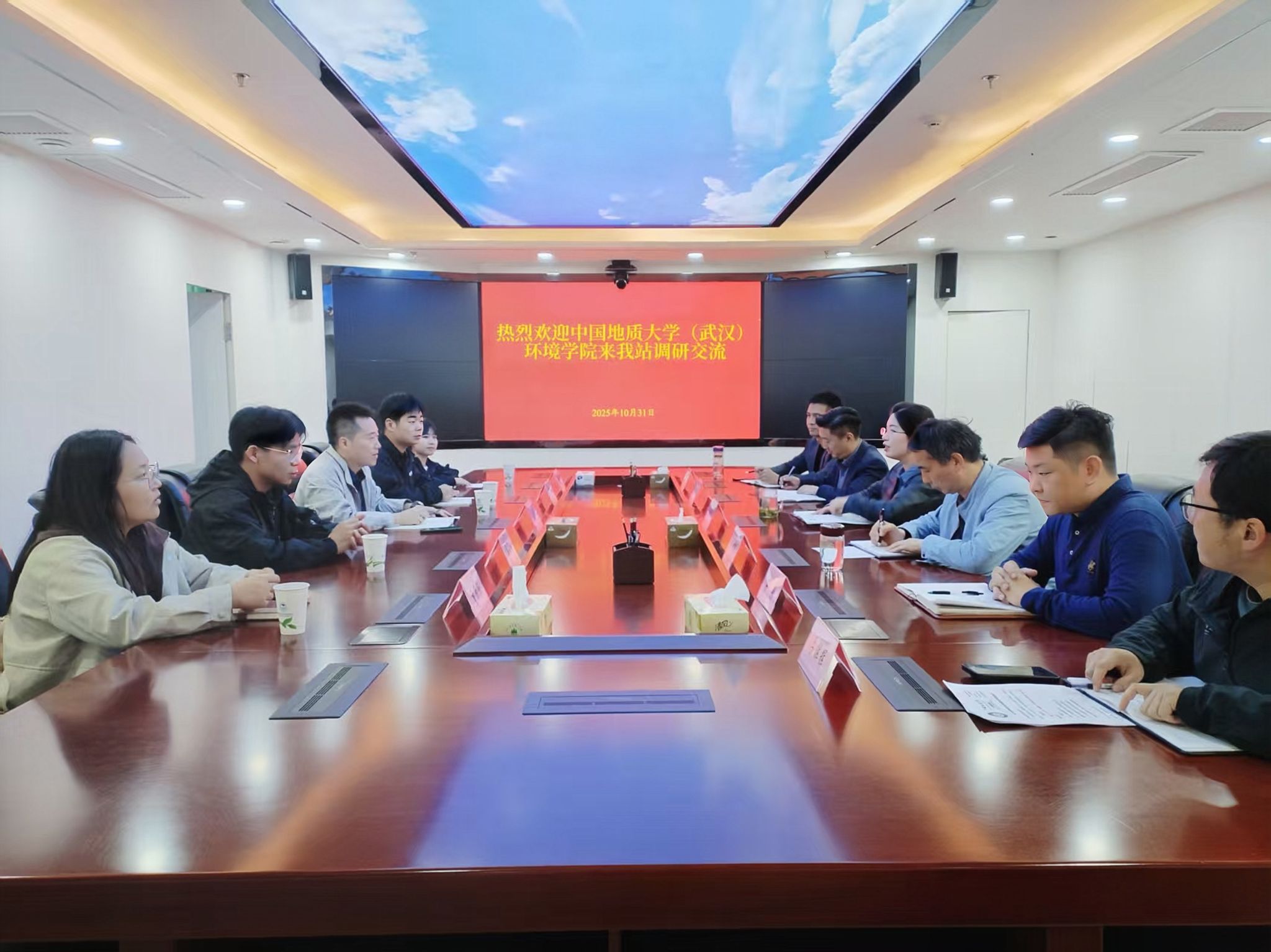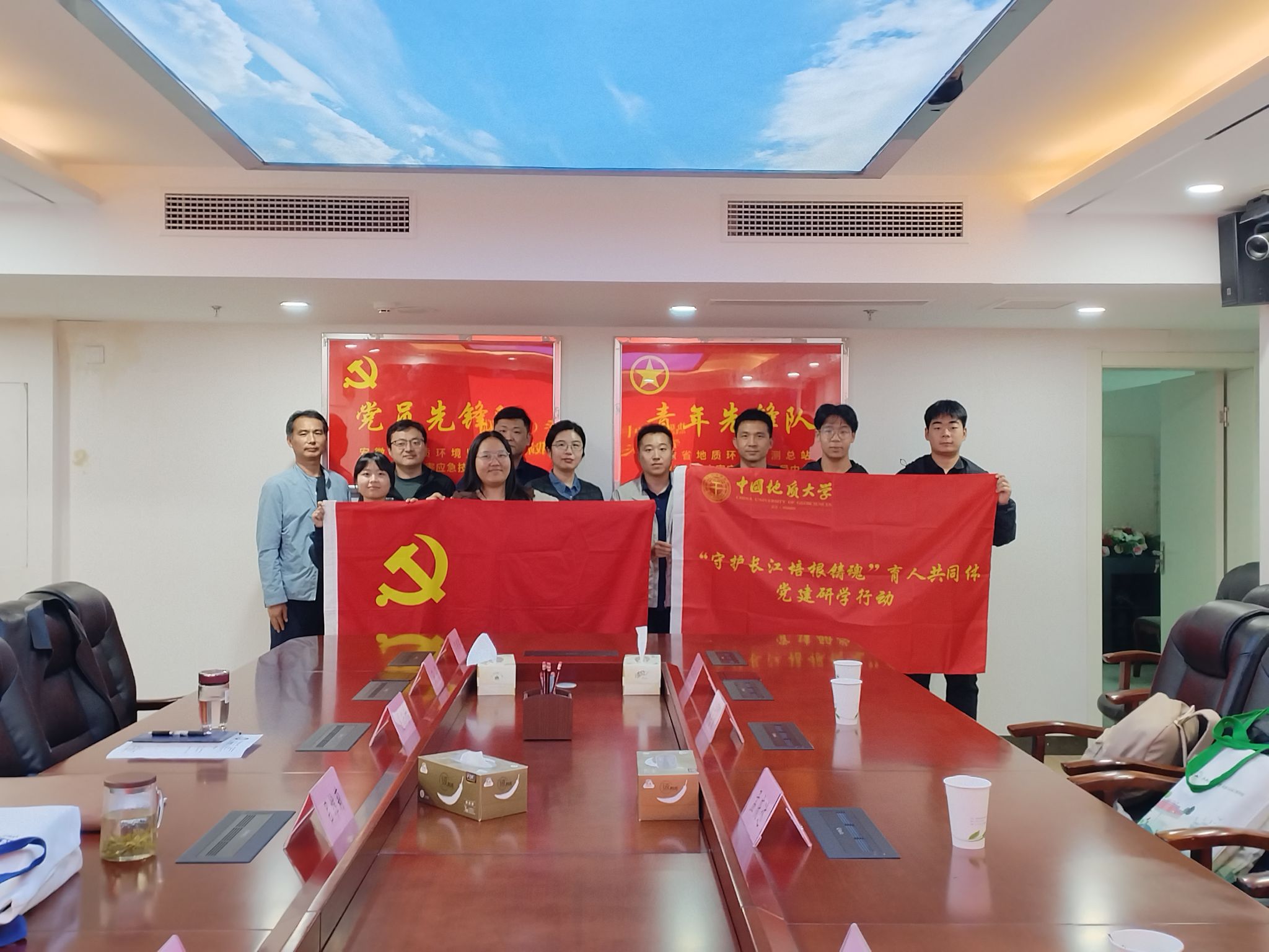在安徽省地质环境监测总站,师生与安徽省地质环境监测总站纪委书记吕维莉,生产技术科(总工办)主任吴兴付,水资源主任杨章贤,纪检室主任、团委书记石泉、人事科副科长陈峰、党办副主任吕辉辉、办公室主任蔡传根等交流座谈。双方围绕“党建+业务”深度融合工作模式、毕业生实习和就业岗位供给、青年成长发展路径等方面开展深入交流,表示将以联合主题党团活动为平台,共建“薪火驿站”,为校社党建协同发展注入新活力。