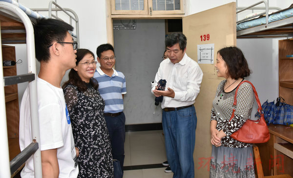 3日上午,无码动漫 党委书记李素矿、院长马腾,副院长祁士华、王红梅、甘义群、郭会荣,党委副书记朱继,学工组全体辅导员来到56栋和57栋学生宿舍看望新生,与新生及家长进行亲切交流,向新生介绍学科专业概况,了解新生诉求,认真解答新生和家长提出的关于学业上和生活中的问题。希望新生尽快适应大学生活,勉励新生发扬艰苦朴素、求真务实的校训精神,努力学习,追求卓越。