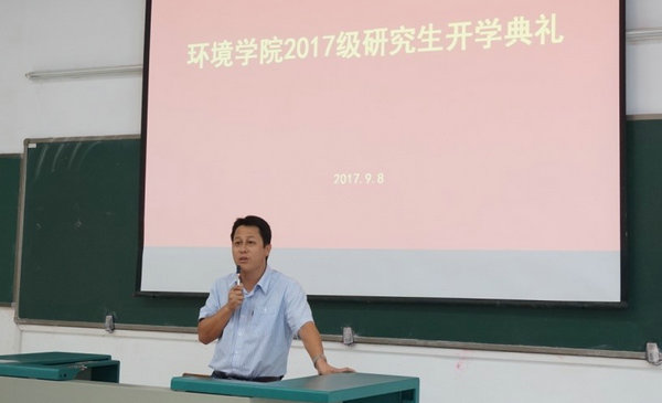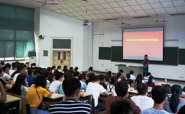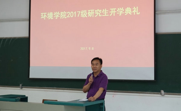2017级研究生开学典礼暨入学教育大会在东区化学楼阶梯教室隆重举行。学院党委书记李素矿,副院长王红梅、甘义群,党委副书记朱继,环境地质系主任周建伟,研究生秘书刘凤莲及研究生辅导员王碧出席开学典礼。