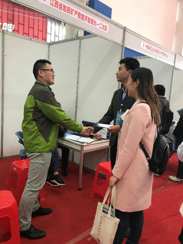 招聘会现场,在上海九澄环境工程有限公司展位前,副书记朱继认真询问了公司的岗位需求、待遇情况、发展前景等,研究生工作部副部长陈慧老师同学院校友单位江西省地质矿产勘查开发局九一二大队负责人深入交流,并向其推荐无码动漫