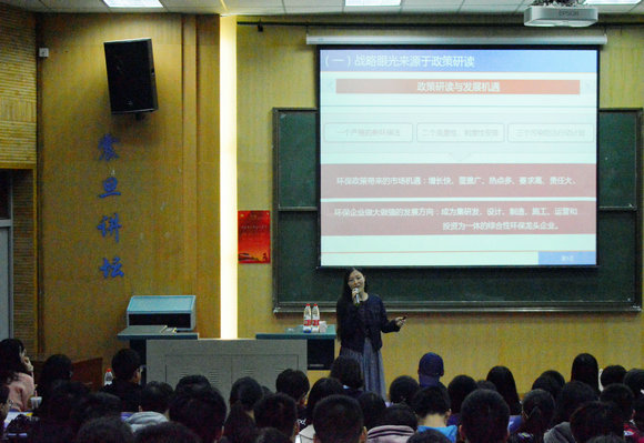 何姝建议在校大学生培养自己的战略眼光和创新能力,以成为企业需要的创新型人才作为发展标准。她还以研读国家环保政策,如《“十三五”生态环境保护规划》等为例为讲解了环境类专业大学生如何培养自己的战略眼光。