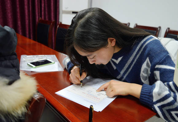 团员青年在“习大大的青年寄语”明信片上写下青春梦想