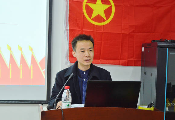 党委书记李素矿发言。他谈到,青年要坚持用习近平新时代中国特色社会主义思想作指导,往深处学、往实处做、往心里走,真正学懂、弄通、做实。始终用马克思主义中国化最新创新成果武装自己头脑,不断坚定“四个自信”、坚固“四个意识”,爱党、爱国、爱家、爱校、爱学、爱习,切实在思想上政治上行动上与以习近平同志为核心的党中央保持高度一致。他表示,学院启动了张国旗班创建行动计划,旨在弘扬国旗精神、建设美丽中国,激励学子永葆赤子情怀,争做时代先锋。同学们要全面系统、原汁原味地学习党的十九大报告,结合自身实际重点学习习近平总书记的高等教育观、生态文明观、青年人才成长成才观,切实做到自己的价值取向与党中央和祖国人民同心、学术方向与政治方向同向、学术卓越与思想卓越同行、学术魅力与人格魅力同在,做又红又专、全面发展,扎根基层、勇于担当,服务祖国、服务人民的社会栋梁。