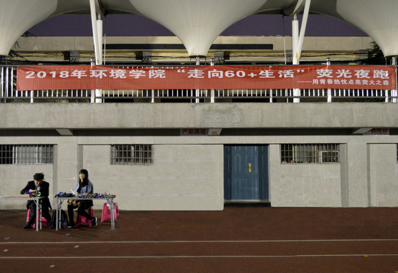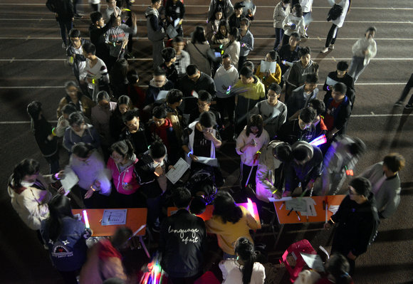 一个小时的时间里,百余名环院青年学子积极参与其中,手戴色彩斑斓的荧光手环,在操场上恣意奔跑,荧光作伴,点亮夜空。