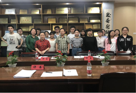 图为文华楼205室评委老师(前)和参赛选手以及学习部工作人员(后)的合影