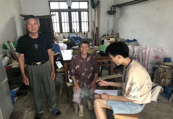 图为:实践队员记录苏州大塘村居民能源结构情况 田小义 摄