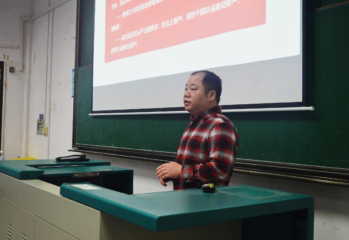 “青年大学习·团干讲团课”活动暨2018年学生干部培训大会在教三208拉开帷幕。学院党委副书记姜明敏老师、团委书记王碧老师、兼职辅导员汪静老师和全体学生干部参加大会。大会从全体奏唱团歌开始,嘹亮的歌声不仅展现了青年的活力与朝气,更展现出了环院学生积极向上的精神面貌。