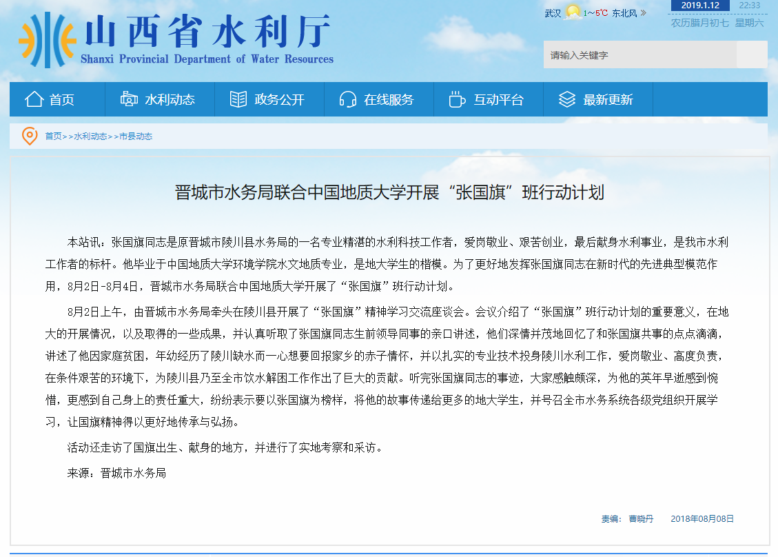 山西省水利厅对本次社会实践进行报道