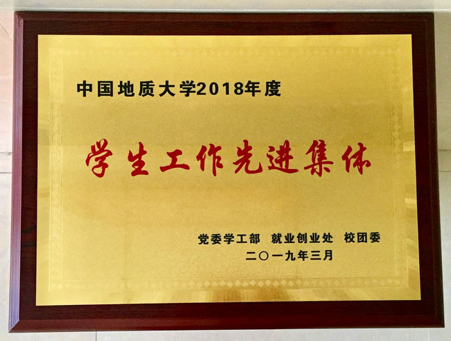 荣获中国地质大学2018年度学生工作先进集体(全校共5个)。