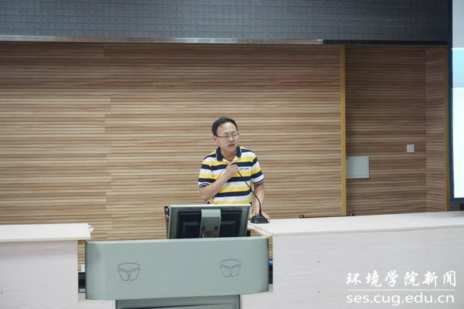 实习带队老师高旭波副教授作主题讲座。他从大地构造位置、地层、岩浆岩、构造四个方面详细地讲解了秭归实习区地质概况。