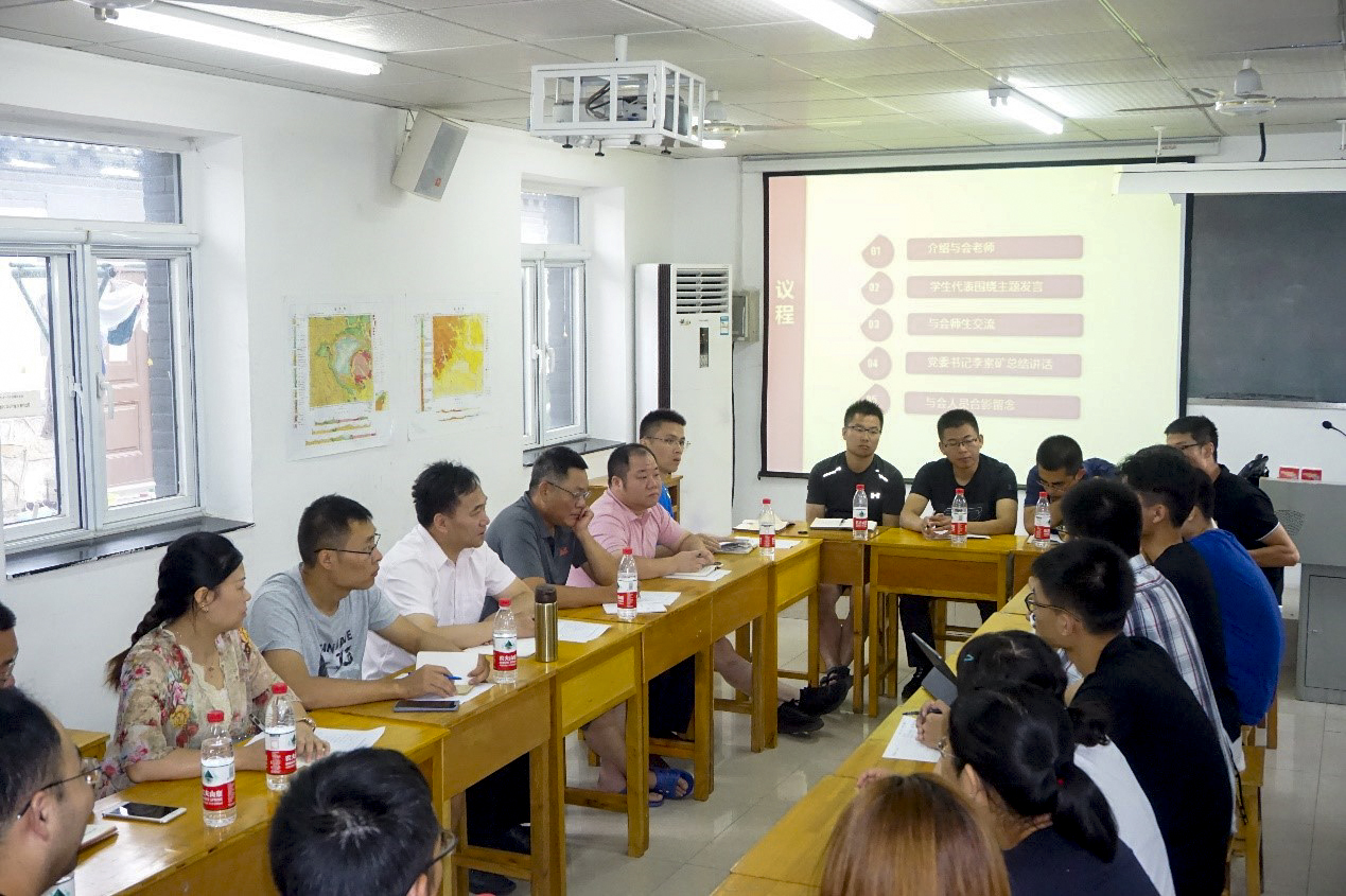 周口店实习基地师生举行“不忘初心,牢记使命”主题师生座谈会活动。学院党委书记李素矿,副书记姜明敏,学院办公室刘凤莲、杨涛老师等,实习带队老师万军伟、柴波、罗明明、陈伟、刘运德、汪聪、马斌、王全荣、陈文岭、王伟,辅导员宋霖及全体在站学生党员,各班班长支书40余人参加师生座谈会活动。