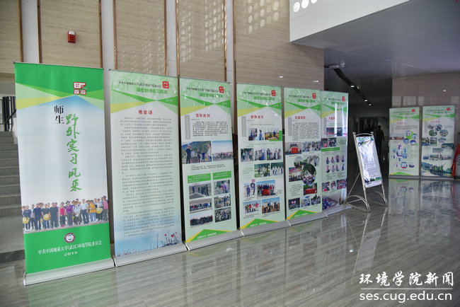 第四届师生野外实习风采展。展板内容包括领导关怀、主题教育、张国旗班、室内教学、野外实习、文化生活、地质现象、山河有情等。同时,无码动漫