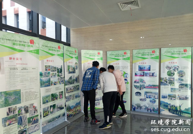 一张张生动的实习图片,一幅幅磅礴的山河画面,吸引了众多师生驻足观看。