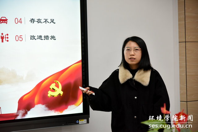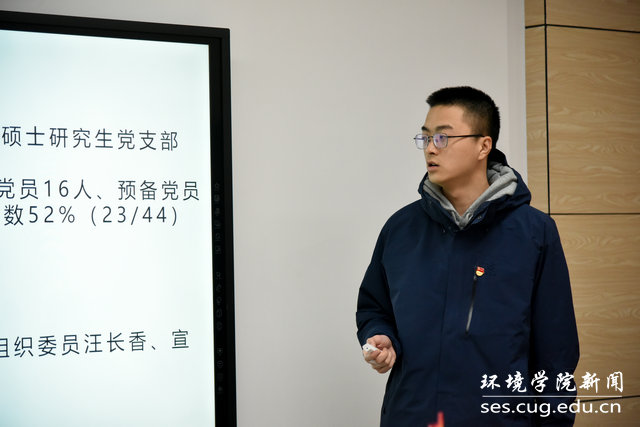 党委最近入选教育部党建工作标杆院系,学院党建和支部工作面临崭新的发展机遇,也会遇到压力和挑战,希望师生党支部继续不忘初心、牢记使命,强化党建引领,落实“七个有力”,教育党员、管理党员、监督党员的同时,在组织、宣传、凝聚、服务群众上下功夫。在党支部日常工作中,进一步加强规范、优化结构、改进作风、提升质量,发挥好党支部的战斗堡垒作用和党员的先锋模范作用,共同打造高质量党建,引领内涵式发展,培育和成长为新时代生态环保铁军,书写新时代学院党建工作的奋进之笔。