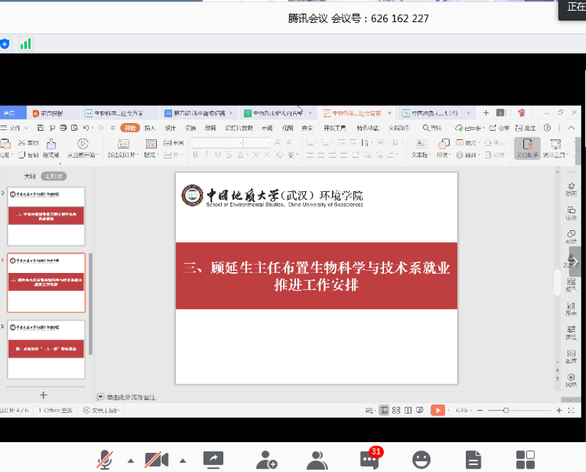 生物科学与技术系主任顾延生介绍该系就业推进工作的具体安排。他表示,针对当前毕业去向尚未确定的同学,全系教师将采取“结对子”的方式,结合同学们实际情况,“一对一”定点帮扶,尽全力帮助同学们顺利毕业、成功升学、尽早就业。