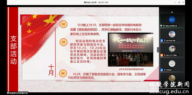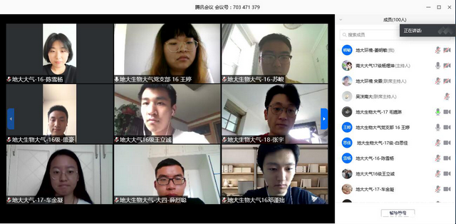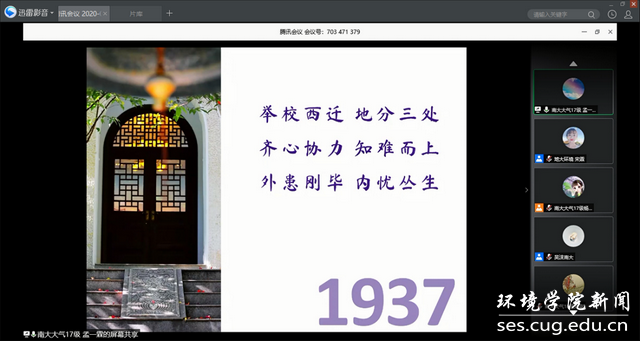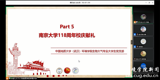 活动第五项,中国地质大学(武汉)为南京大学118周年校庆献礼,生物大气党支部全体成员打开摄像头,向他们表示了最真诚的祝愿:中国地质大学(武汉)无码动漫