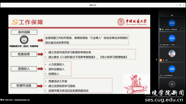 2019级博士研究生党支部书记严璐从支部基础建设、思想引领、绿色志愿服务、生态保护社会实践等多个方面进行了支部介绍,展示了“构建本-硕-博科学研究梯队,支部建设引领学术卓越”的支部特色。