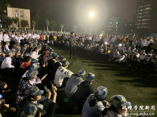 严厉又不失温和体贴的教官一声“定”,军姿飒爽,蓝色帽檐上便被骄傲缀满繁星;主席台洪亮的指挥声突击而来,所有人整齐划一的面朝同一个方向,展现出环院风采;一个“散”字令下,刚认识的新伙伴挽起胳膊欢呼,情同手足,奔向菜色丰富的食堂;“唯有头顶星空不可辜负”,随着晚餐结束的脚步,环院学子头顶星汉灿烂,脚踩砂石寂静,左手摘月,右手持梦,于军姿站立等日常训练之后跟随学长学习地大校歌,乐音绕指,与金桂流香。