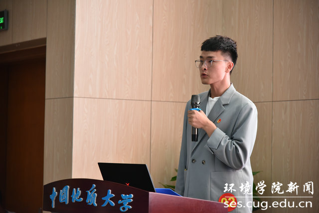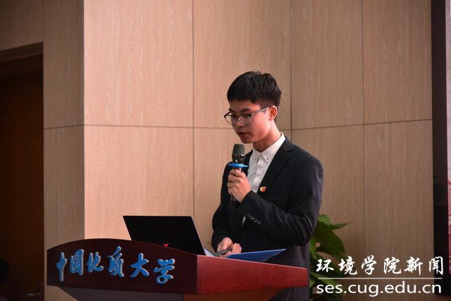 学工组辅导员陈俊男宣读《团费收缴、使用和管理情况报告》。
