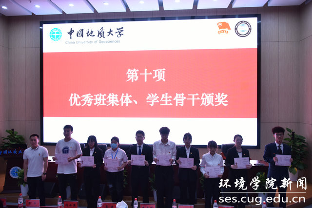 最后,校团委副书记吴迪、学院党委副书记王海锋,学院团委副书记李平、辅导员孟庆达分别为优秀班集体、学生骨干颁奖。