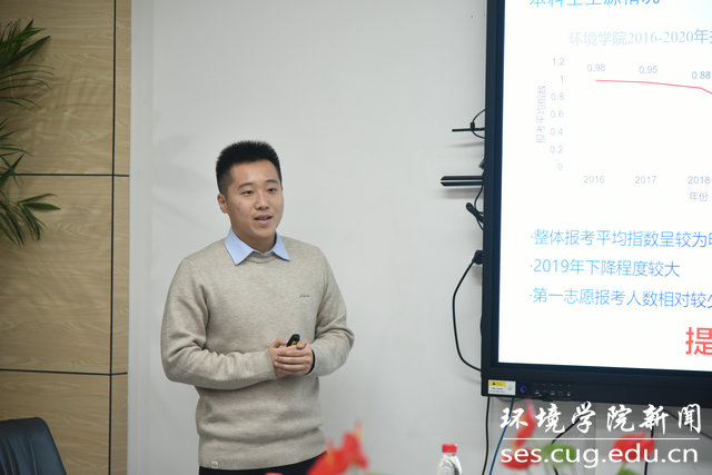 柴波副院长介绍学院本科生导师制和班主任工作基本情况。他从“为什么要实施全年级本科生导师制、导师在本科生各学习阶段有何作用、如何开展本科生与导师的双选、如何开展指导”四方面向大家介绍学院本科生全年级导师制的背景、实施办法、导师基本职责等,号召大家努力培养和提高学生科研能力与创新思维,把学院锻造成为培养新时代红专能优生态环保铁军的摇篮。随后,他从“班主任在人才培养环节有何作用?如何开展本科生班主任工作?如何成为优秀的班主任?”三方面向大家介绍学院班主任基本情况和工作办法,通过分享环境工程(卓越班)班主任工作经验,要求大家按照学校统一要求,落实立德树人根本任务,牢记教书育人使命,勉励大家做“四有”好老师,当育人“大先生”。
