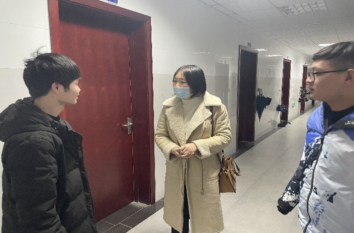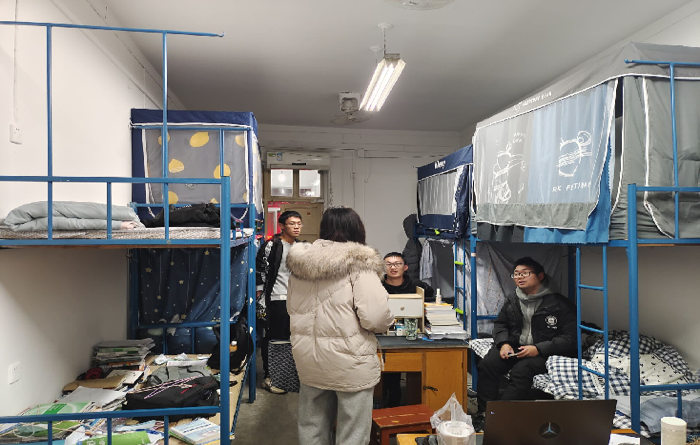 学工组辅导员李平、宋霖,兼辅王懿洁、陈孜依一行深入两校区本研学生宿舍,开展宿舍安全卫生隐患检查工作,并将检查情况记录在册。他们与同学们互致新年问候,详细了解近期因疫情防控管理期间同学们的学习生活情况和思想动态,对同学们日常生活中遇到的困难与需求及时给予了意见和反馈。同时提醒同学们要增强宿舍安全意识,保持宿舍卫生,要严格遵守疫情防控规定,常通风、勤洗手、戴口罩,加强体育锻炼,养成良好生活习惯。