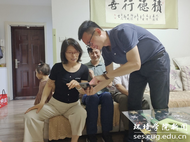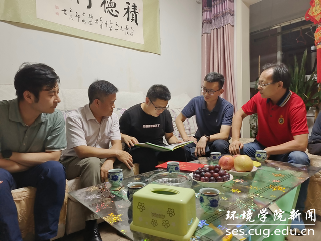 研究员高旭波向张云飞详细介绍了我校北戴河、周口店、秭归野外实习,并分享了实习过程中的趣事。张云飞认真翻阅了两本画册,表示从地大师生野外实习的风采中,看到了地大人“艰苦朴素,求真务实”的校训精神,为即将成为地大研究生感到开心与自豪。同时,张云飞也跟老师同学们交流讨论了未来的学习计划和对研究生生活的憧憬。最后,老师同学们与张云飞一家合影留念。