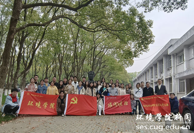 2022级硕士研究生第三党支部在南望山校区校史馆、四重门以及英雄校友张国旗雕像前开展“明校史担使命,仰英雄传精神”主题党日活动。学院党委书记李素矿、副书记王海锋,辅导员陈俊男、赵恩民,支部全体党员及部分入党积极分子参加本次活动。在校史馆和四重门,全体成员在幅幅图片、件件实物中感受到了学校厚重的历史积淀与丰硕的办学成果,领略“艰苦朴素、求真务实”的校训精神。在张国旗雕像前,李素矿为大家讲解了张国旗的英雄事迹以及张国旗雕像的由来,强调张国旗雕像不仅代表他自己,更代表地大人“艰苦朴素、求真务实”的校训精神。张国旗精神既是传承,又是信仰,通过致敬英雄,引导广大青年传承张国旗精神,培育红专能优的生态环保铁军和担当民族复兴大任的时代新人。