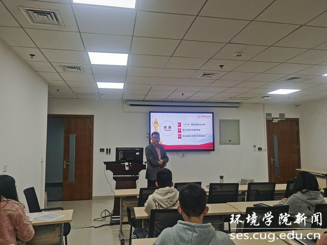 通讯员何骏昊、陈俊男  摄影刘晔  编辑耿婧)按照学校处级及以上党员领导干部、党支部书记讲党课制度,无码动漫 党委制定印发了院领导联系指导学生支部方案。4月6日中午,无码动漫 副院长柴波以“聚焦生态文明建设优化国土空间生态保护修复”为主题为地下水专业本科生党支部、2022级博士研究生党支部以及第28期发展对象培训班讲授专题党课。本次党课在环境楼347举行,党建辅导员陈俊男,学生党支部全体党员及培训班全体学员参与学习。