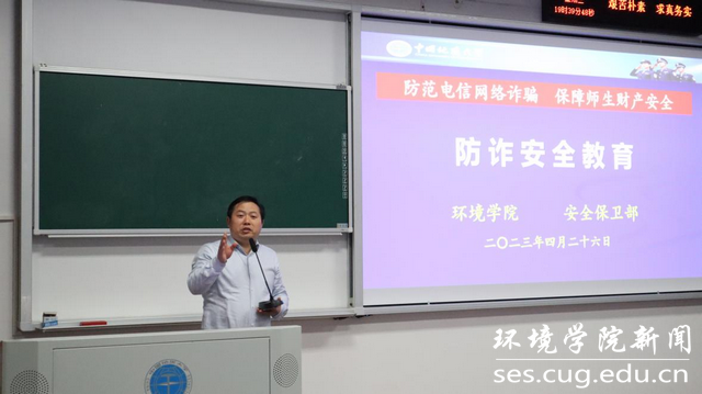 学校安全保卫部魏景明老师向同学们开展防诈安全教育,带领同学们深入学习了党中央、教育部、学校有关反诈防诈的文件精神,向同学们展示各种类型诈骗案例,传授了防诈反诈相关常识与技能,并通报了学院《安全微课》登录学习情况,他希望同学们务必提高防范网络电信诈骗意识,树立正确“三观”,认真学习防诈反诈知识,为营造平安校园共同努力。