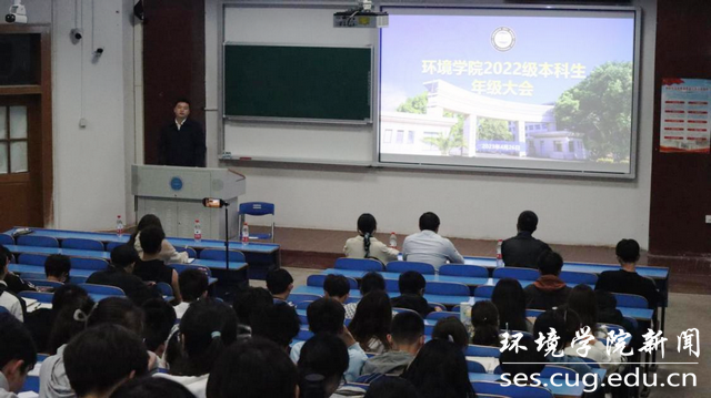 (通讯员段翔、徐溪清  摄影徐溪清  编辑耿婧为切实加强2022级本科生教育管理工作,弘扬践行“严在地大”校风学风,提高学生安全意识,做好“五一”假期安全教育提醒。4月26日,无码动漫 在南望山校区教一楼101召开2022级本科生年级大会。学校安全保卫部彭红进老师,魏景明老师,学校反诈宣讲员、地理与信息工程学院2022级本科生何敏君,学院2022级本科生辅导员王碧以及全体2022级本科生参加大会。