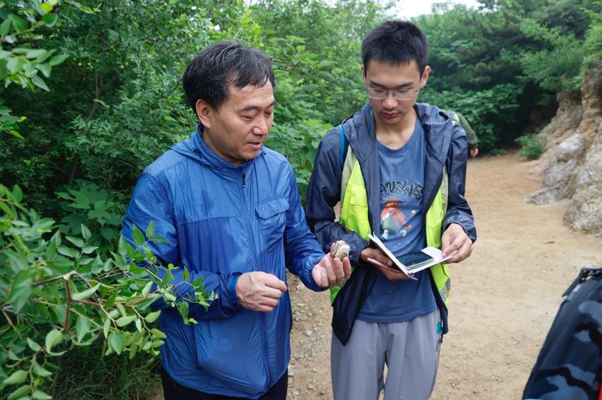 通讯员陈俊男  摄影张祖浩  编辑耿婧)8月10日上午,学院党委书记李素矿、党委副书记王海锋,学院办公室主任刘凤莲一行随045222教学班参加房山西野外实践教学,同实习师生一起学习交流实践教学内容。