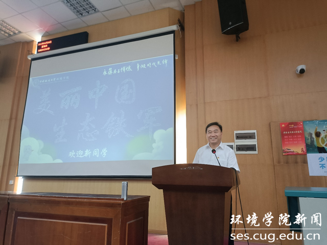 师生始终学习践行习近平生态文明思想和习近平总书记27字生态环保铁军精神要求,坚持打造新时代生态环保铁军的摇篮,做红专能优生态环境保护铁军,干在实处、走在前列。他表示,全体新生的名字组成了迎新墙上“美丽中国 生态铁军”八个大字,希望同学们能够担起建设美丽中国的重任,永葆赤子情怀、争做时代先锋,做到“胸怀祖国,以红专能优为标尽显铁军风采;放眼世界,凭古今中外之学续写地大荣光”。