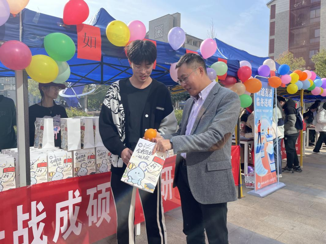 学院党委书记姜明敏为考研学子发放考研加油包并进行亲切慰问,他叮嘱同学们既要全力以赴保持良好的学习状态,也要劳逸结合保持身心健康,要按照既定的安排合理备考,不骄不躁,持续发力,坚持到最后,取得满意的成绩。