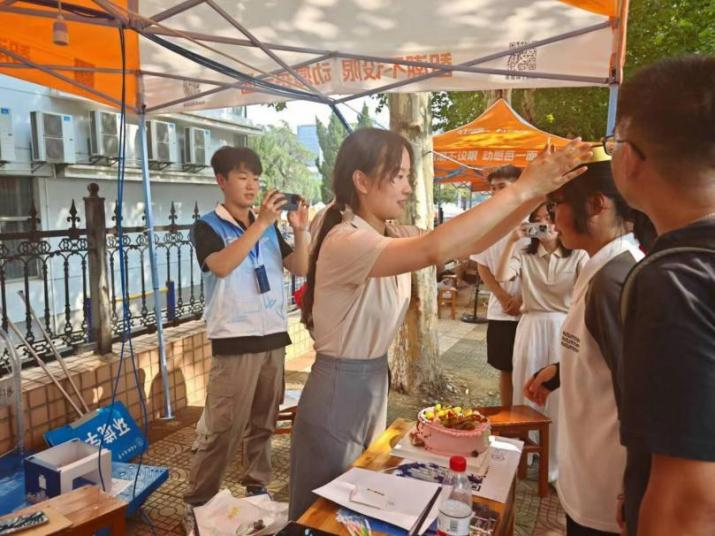 辅导员宋霖老师为施婷婷戴上生日帽