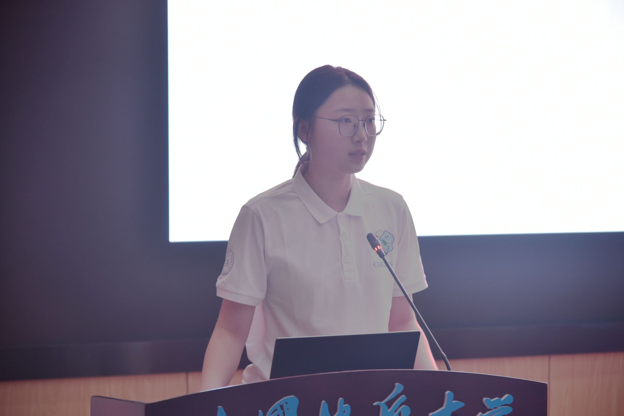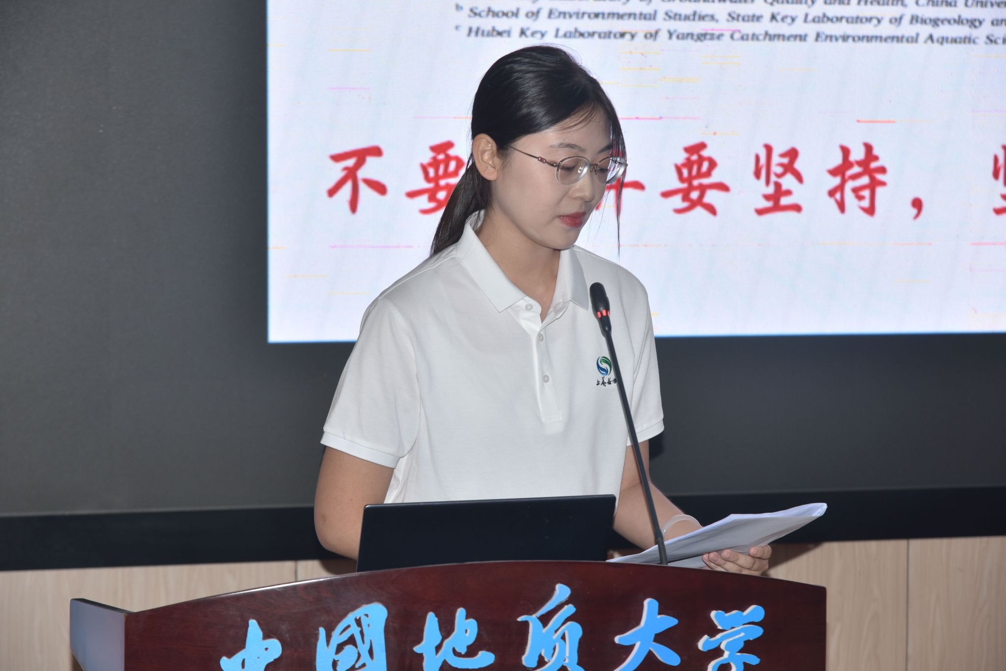 研究生新生代表、2024级大气科学专业硕士生田力文发言,她从对自己专业的认知出发,讲述地大对她成长的影响,感谢学院跨学科培养体系及红专能优生态环保铁军育人理念,立志在专业领域不断深耕,解决实际问题,不断服务社会。她与全体新生共勉:一是怀抱理想,将个人奋斗与祖国发展紧密结合;二是提升综合能力,全方位提高自己的技能和素质;三是勇攀人生高峰,让青春在祖国和人民需要的地方绽放。