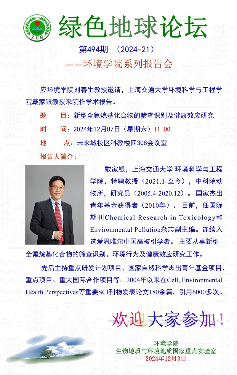 上海交通大学环境科学与工程学院戴家银教授学术报告
