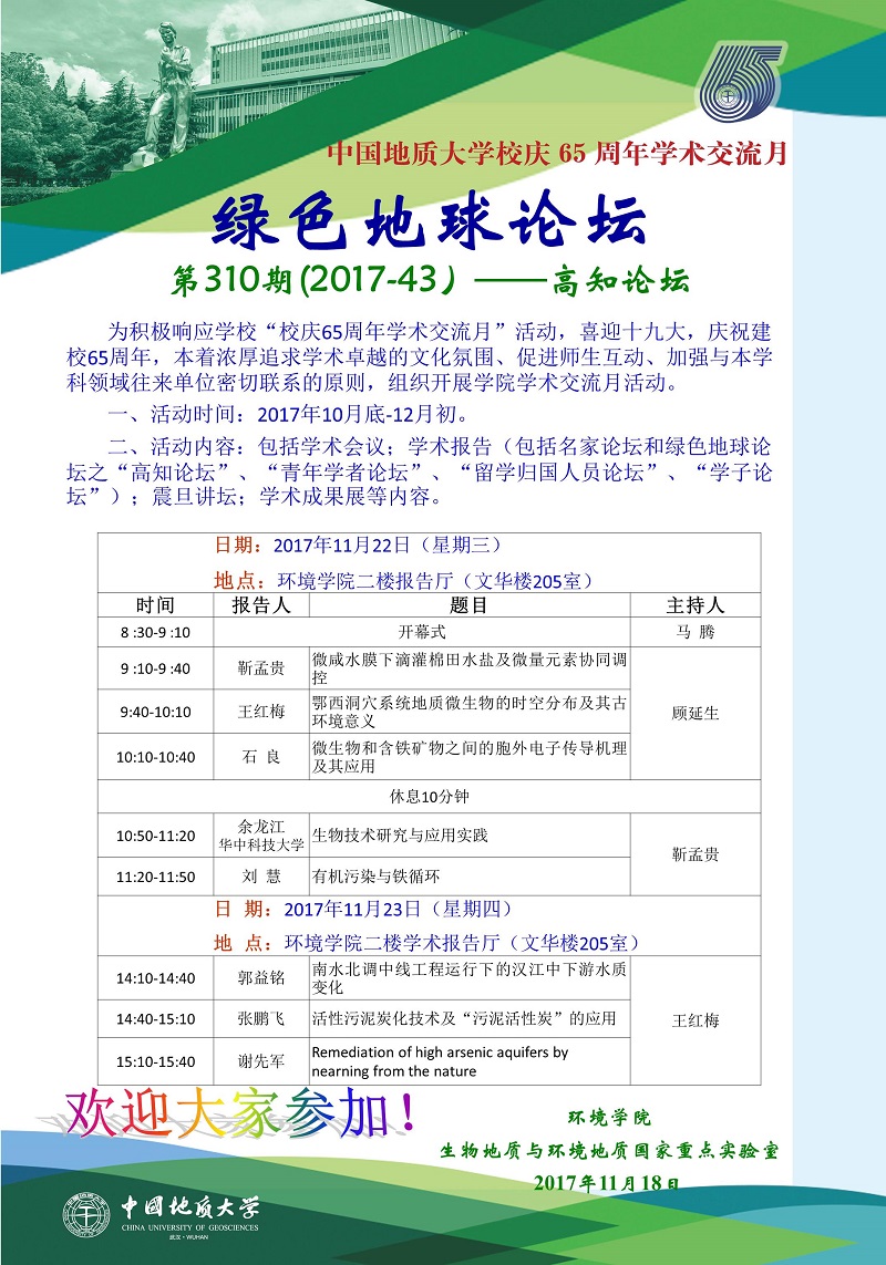 “校庆65周年学术交流月活动”绿色地球论坛——高知论坛