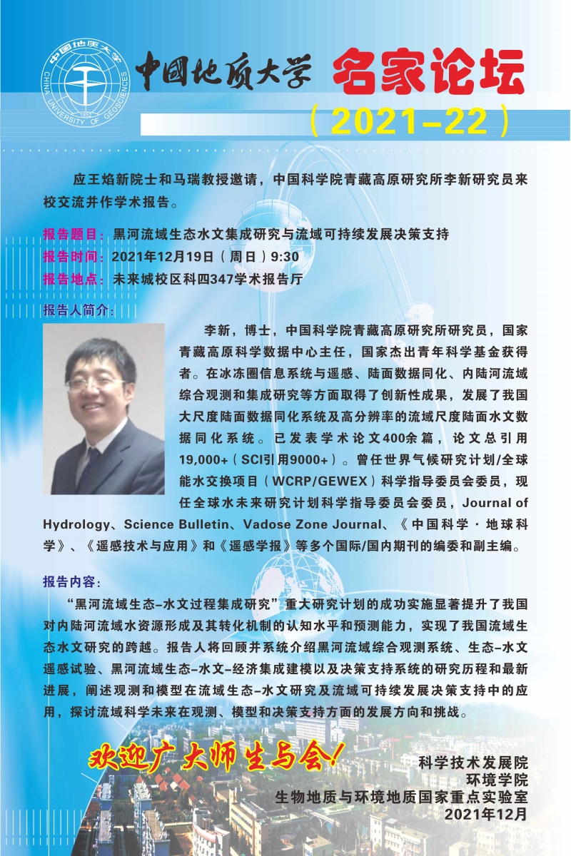 中国科学院青藏高原研究所李新研究员做客“名家论坛”