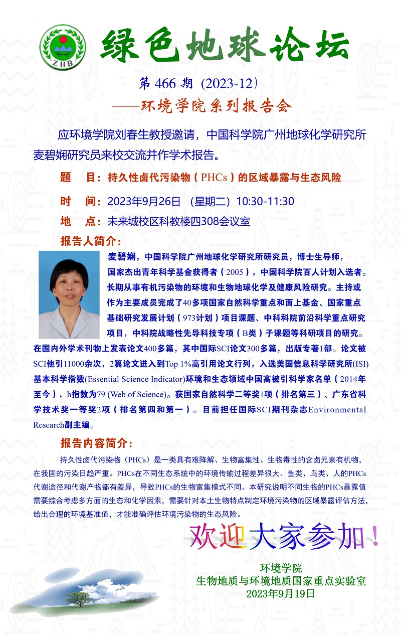 中国科学院广州地球化学研究所麦碧娴研究员学术报告