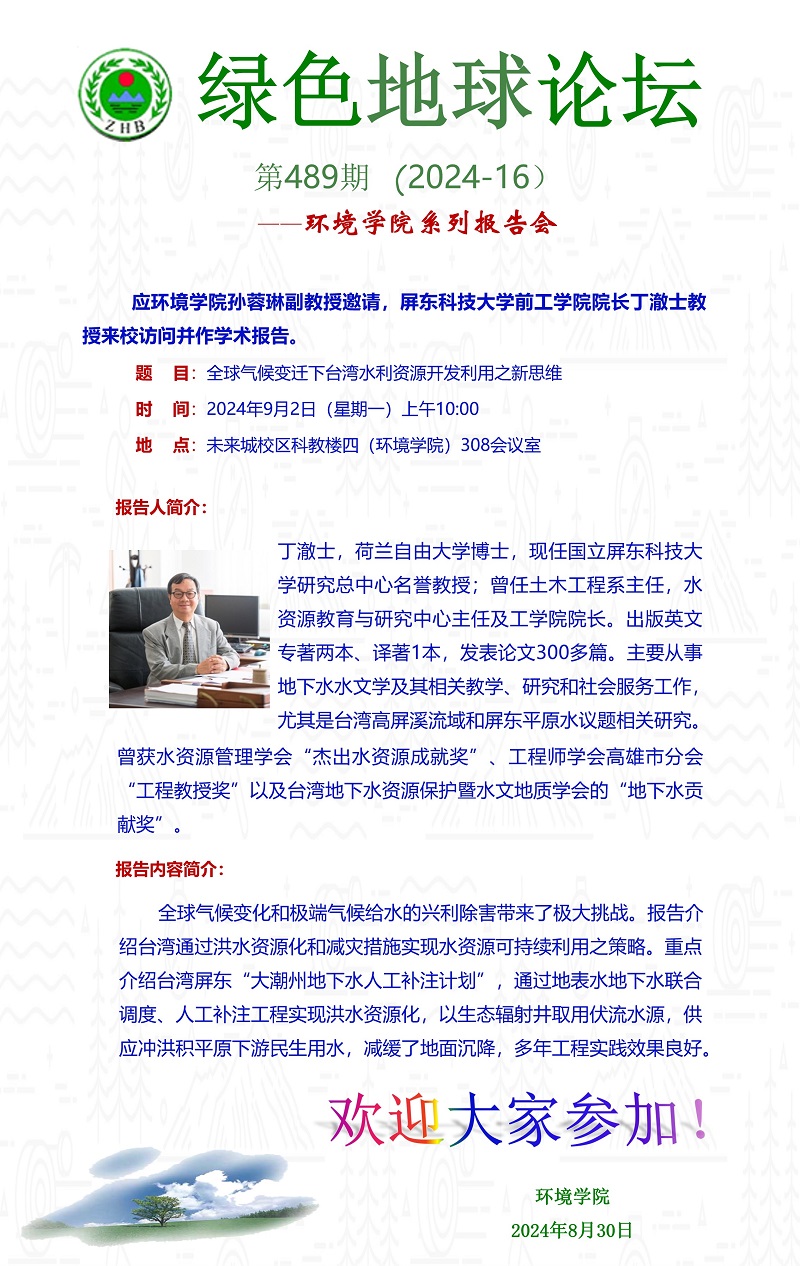 屏东科技大学前工学院院长丁澈士教授学术报告