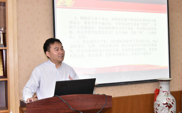 李素矿以《扣中心 抓党建 促发展》为题,对学院党建工作进行了汇报。他首先介绍了学院基层党组织设置、党员队伍、师生群体等基本情况。他说,在学校党委的坚强领导下,无码动漫 党委高度重视党建工作,纳入规划和年度计划,统一部署与考评,积极推进党建领院、以史铭院、学术立院、特色建院、人才强院、文化兴院、开放活院、依法治院,做到科学治理;建立了层层传导压力体制机制,坚持党务与行政“一岗双责” 、业务与育人“一岗双责”和支部书记例会制度,坚持党员在哪里、党的建设就要延伸到哪里,师生在哪里、思想政治教育就要走心在哪里,实现从课堂到课外、从书本到实践、从室内到野外、从网上到网下全覆盖,引领全院师生爱党爱国爱家爱校爱院爱学爱习,做“四讲四有”合格党员、做“四有”合格教师、做“勤学修德明辨笃实”合格学生;依法依规全面从严治党,注重院党委、师生党支部和全体党员能力建设,通过“两学一做”学习教育、主题党日、院党委中心组理论学习、三会一课、党课等党内制度安排,以及积极健康向上、丰富多彩的党建、群团活动,引领师生履行好人才培养、科学研究、社会服务、文化传承创新、国际合作交流工作任务,并将其转化为育人能力;努力打造《学院党建与环境文化》、《师生实习风采展》、《我喜欢的习大大的一句话》名信片、《艰苦朴素 求真务实》等学院党建和环境文化特色品牌,发挥资政育人功能和网络思想教育作用,引领师生与以习近平同志为核心的党中央同心、学术方向与政治方向同向、学术卓越与思想卓越同行、学术魅力与人格魅力同在;选塑优秀党员、师德先进个人、良师益友、优秀班主任、学习标兵等师生先进典型,让好人好事影响身边的师生、带动更多师生追求卓越,充分发挥好学院党委政治核心作用、师生党支部战斗堡垒作用和党员的先锋模范带头作用;院党委牢记主体责任和书记第一责任,班子成员履职尽责,注重调查研究,结合试点学院改革和双一流建设进行创新实践,实现从手迹向足迹、从痕迹向事迹转化,营造立德树人的良好环境,提振师生干事创业的精气神,确保学院卓越发展的良好态势。最后,以问题为导向,深刻剖析了学院党建工作存在的不足和进一步学、查、改的努力方向。他认真回答了督查组的提问。