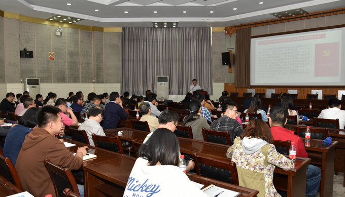 李素矿以“坚持用习近平新时代中国特色社会主义思想为指引,落实学校十二次党代会精神,推进学院内涵式发展”为题领学政治学习。
