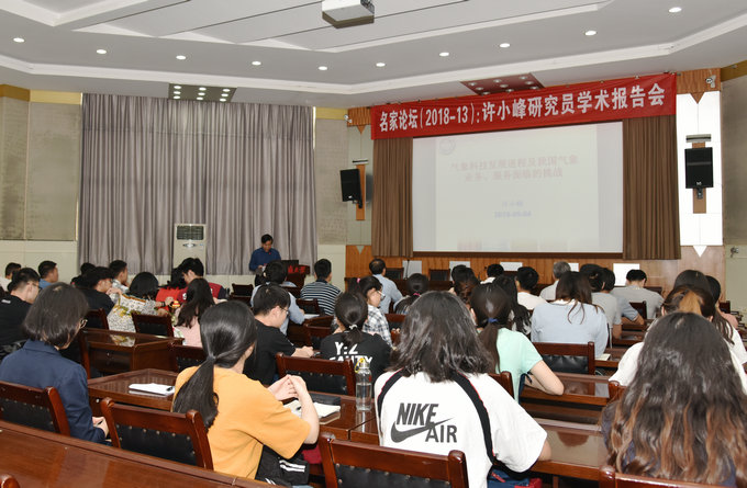 许小峰研究员首先从国家新的战略需求角度提出了大气科学发展的一系列问题;其次介绍了大气科学的发展历史以及涉及到的相关古今中外的科学家,其中重点介绍了对现代大气科学做出重要贡献的两个学派——挪威学派和芝加哥学派,还介绍了1949年后中国气象科技与业务的发展历史;最后,总结了气象领域在业务开展、具体服务存在的问题以及面临的挑战,并根据新的需求和科技进步展望了大气科学的未来发展方向。许小峰研究员以渊博的知识给师生们留下了深刻印象。