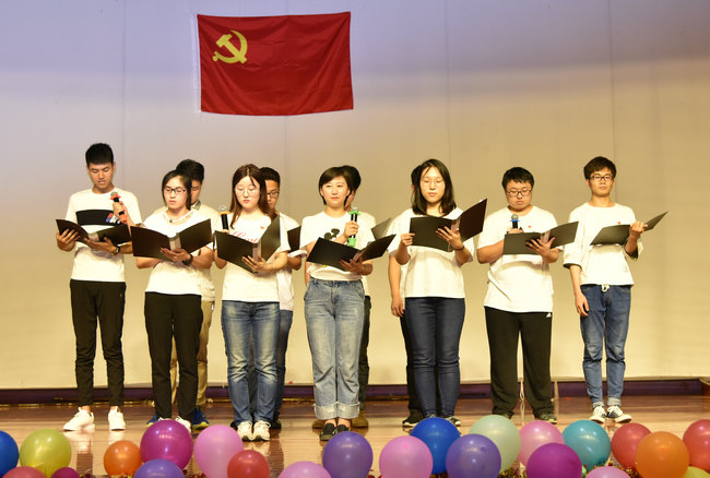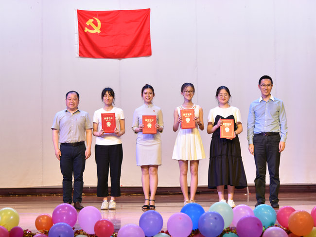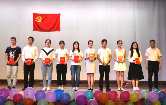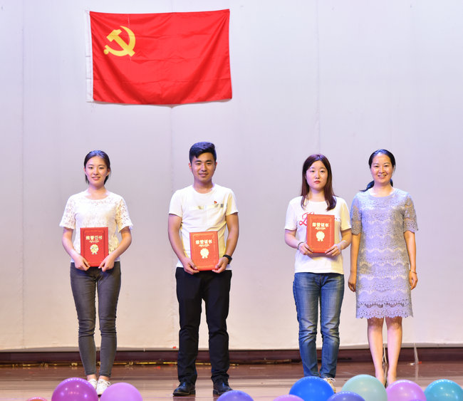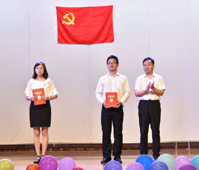李素矿宣读优秀学生党员表彰决定,并为储生明、严贵成、巩文静、张甜甜、孙嘉聪、刘玉舒、严璐、曲乐、黄洋等九位优秀学生党员颁发证书。