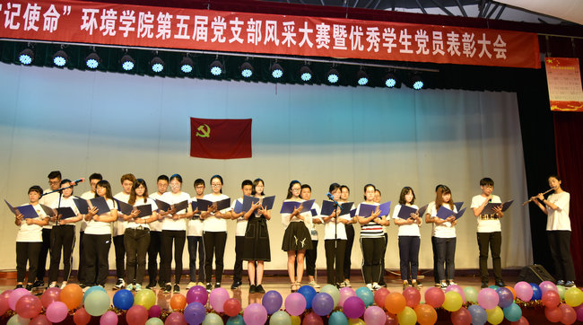 党支部风采展示环节,各党支部为大家呈现了精心准备的节目。环境工程专业大学生党支部带来了合唱歌曲《隐形的翅膀》;2017级专硕一班硕士研究生党支部带来了诗朗诵《从我心底深爱的祖国》,以及合唱歌曲《共筑中国梦》;2017级学硕二班硕士研究生党支部带来了诗朗诵《祖国,我怎能没有你》;地下水专业大学生党支部带来了诗朗诵《祖国,用青春的名义为你歌唱》;水文专业大学生党支部带来了合唱歌曲《国家》;生物大气专业大学生党支部带来了诗朗诵《祖国啊,我亲爱的母亲》;2017级学硕一班硕士研究生党支部带来了诗朗诵加合唱《厉害了我的国》;实验班大学生党支部带来了诗朗诵《我心永恒》;2017级专硕二班硕士研究生党支部带来了合唱《弹起我心爱的土琵琶》。