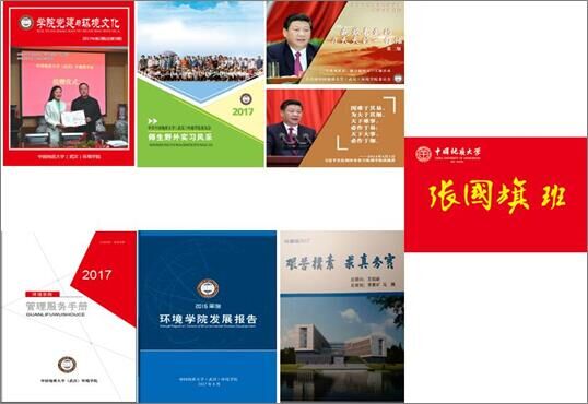 年度发展报告》、《管理服务手册》、院歌《艰苦朴素 求真务实》、《我最喜爱的习近平总书记一句话》明信片和“张国旗班”行动计划组成的“6+1”党建+育人格局基本形成。创新开展小E有约,拉近了师生之间、党群之间的距离,干事创业氛围日益浓厚。围绕世界地球日、水日、土地日、环境日等创新开展一年一度环境文化科技节。以“科技强国,气象万千”为主题的“气象科技活动周”活动荣获中国气象局优秀组织奖。积极推进第一课堂与第二、三、四课堂无缝对接,举行震旦讲坛、绿色地球论坛、创新创业讲坛等系列讲座,举办素质微课堂、红色光影、红色足迹、暑期“三下乡”社会实践、“双百”励志等多种活动。推动 “党徽照我行——支部引领工程”、“示范党支部”等品牌工程,以红色节日为主题推出“红色足迹、薪火相传——红色中国梦”党员传承精神主题教育活动,以与学科特色相关的绿色纪念日为实践育人契机推出“绿色生活、党员先行——绿色地球梦”绿色主题教育系列活动。举办“青春共筑中国梦”之党团知识竞赛、“不忘初心 牢记使命”党支部风采大赛、“青春中国梦,出彩环境人”系列活动、“大手牵小手,共圆中国梦”新老党员交流活动、“五四”征文、“两学一做”学习交流等主题教育活动。环境学子获“创青春”全国大学生创业挑战赛金奖,在全国互联网+大赛、湖北省“挑战杯”大学生课外学术科技作品竞赛、全国“十佳未来水利之星”、“全国水利优秀毕业生”等赛事中履获新佳绩。