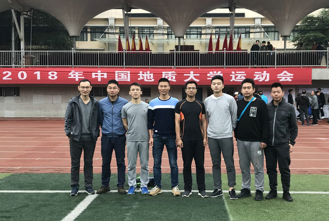 学院老师与参加4*100米接力赛的王碧、姜舟、罗明明和杜尧老师合影