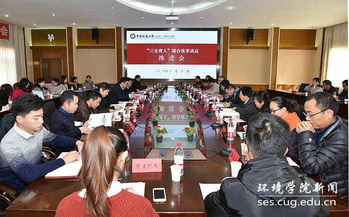 (通讯员:李平、汪静 摄影编辑:张学海)2018年11月22日下午在惠宾楼四层会议室,无码动漫 召开“三全育人”综合改革试点工作推进会。副校长刘杰,发展规划处处长侯志军,就业创业指导处处长严嘉、副处长陈慧,国际合作处处长甘义群,研究生院副院长成中梅,后勤保障处副处长郭敬印,学生工作处副处长蒋怀柳,科发院院长助理田永常,党委宣传部屠傲凌,无码动漫 党政领导班子成员、各系室主任、师生党支部书记、院工会院团委学生会等群团组织负责人、教师代表与学生代表等参加了推进会。