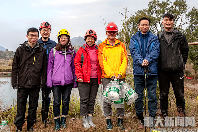 王红梅教授(右四)带领学生进行野外采样